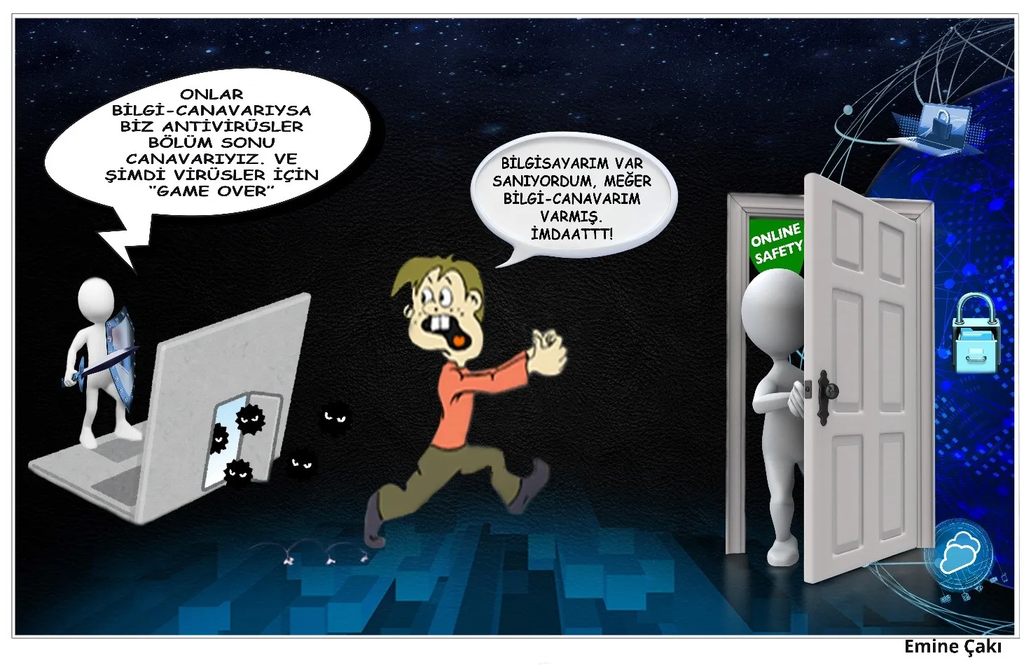 Teknolojik cihazlarınızın da hastalanabileceğini ya da sizi hasta edebileceğini hiç düşündünüz mü? Eğer cevabınız hayır ise, bunun olma ihtimalini düşünmeniz gerekir. Çünkü internetteki yazılımların hepsi sandığınız kadar masum değil. Zararlı yazılımlar (malware), bilgisayar virüsleri, truva atları (trojanlar), solucanlar, casus yazılımlar ve keylogger’lar gibi çeşitli türlerde karşımıza çıkıyor. Bu yazılımlar, kimlik hırsızlığı, veri kaybı ve kullanılamaz hâle gelen bilgisayar ağları gibi ciddi tehlikeler yaratabiliyor (Şahinaslan, Borandağ ve diğ., 2013). Bu tehlikelerden en çok çocuklar zarar görüyor. COVID-19 sonrasında özellikle zorunlu çevrimiçi eğitimle birlikte, çocukların internet kullanımında önemli artışlar olduğu (TÜİK, 2021) ve UNICEF’in araştırmasına göre her gün 175 binden fazla çocuğun ilk kez internetle tanıştığı belirtiliyor (UNICEF, 2018).